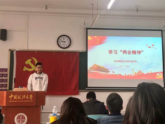 2021年是中国共产党建党100周年,也是“十四五”规划开局之年,我国将开启全面建设社会主义现代化国家新征程、向第二个百年奋斗目标进军。2021年3月4日至3月11日第十三届全国人大四次会议与全国政协十三届四次会议在北京召开,对处于重要历史交汇点上的中国擘画新阶段的发展方向与路径具有重要意义。为深入学习理解2021年全国两会精神,商学院经济学本科生党支部举行了此次学习与交流会,由党支部书记白剑宇进行主持。