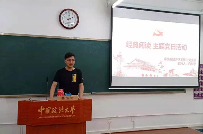 习近平总书记多次向青年人强调,读书,尤其是经典的书籍,对思想文化水平和文化素质的提升作用。经典阅读党日活动能够引导大学生党员在读书中学会思考,在读书中开拓视野,在读书中享受生活,在读书中感悟人生。为进一步加强学生党员的综合素养,提高学生党员的政治意识和党性修养,商学院经济学本科生党支部于2021年6月18日在端升楼307举办了经典阅读主题党日活动,党支部书记白剑宇主持了此次会议。