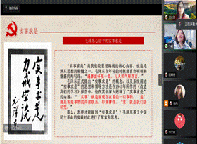 本次主题党日活动的主讲教师为经济学支部李超老师,讲授的重点是“从统计调查看实事求是”。她以统计学为视角,从“虚怀观是”、“和气察是”、“去偏归是”、“去伪存真”、“眼睛向下”五个方面帮助大家了解什么是毛泽东心目中的“实事求是”,以及怎样才能做到实事求是。