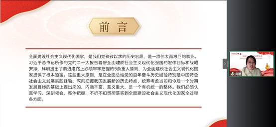 党支部书记侯冠宇明确本次理论学习的指导思想是“以党的二十大精神为引领,紧紧围绕学习宣传贯彻党的二十大精神”。学习主题是“中国式现代化的历史逻辑、理论逻辑与现实逻辑”。本次主讲人是2021级政治经济学博士生张春华、2021级创新经济学博士生高迪与张文英。