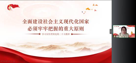 最后,高迪以《全面建设社会主义现代化国家必须牢牢把握的重大原则》为题,论述了坚持和加强党的全面领导,确保我国社会主义现代化建设正确方向;坚持中国特色社会主义道路,始终把国家和民族发展放在自己力量的基点上;坚持以人民为中心的发展思想,让现代化建设成果更多更公平惠及全体人民;坚持深化改革开放,不断增强社会主义现代化建设的动力和活力;坚持发扬斗争精神,依靠顽强斗争打开事业发展新天地,是前进道路上必须牢牢把握的五条重大原则。