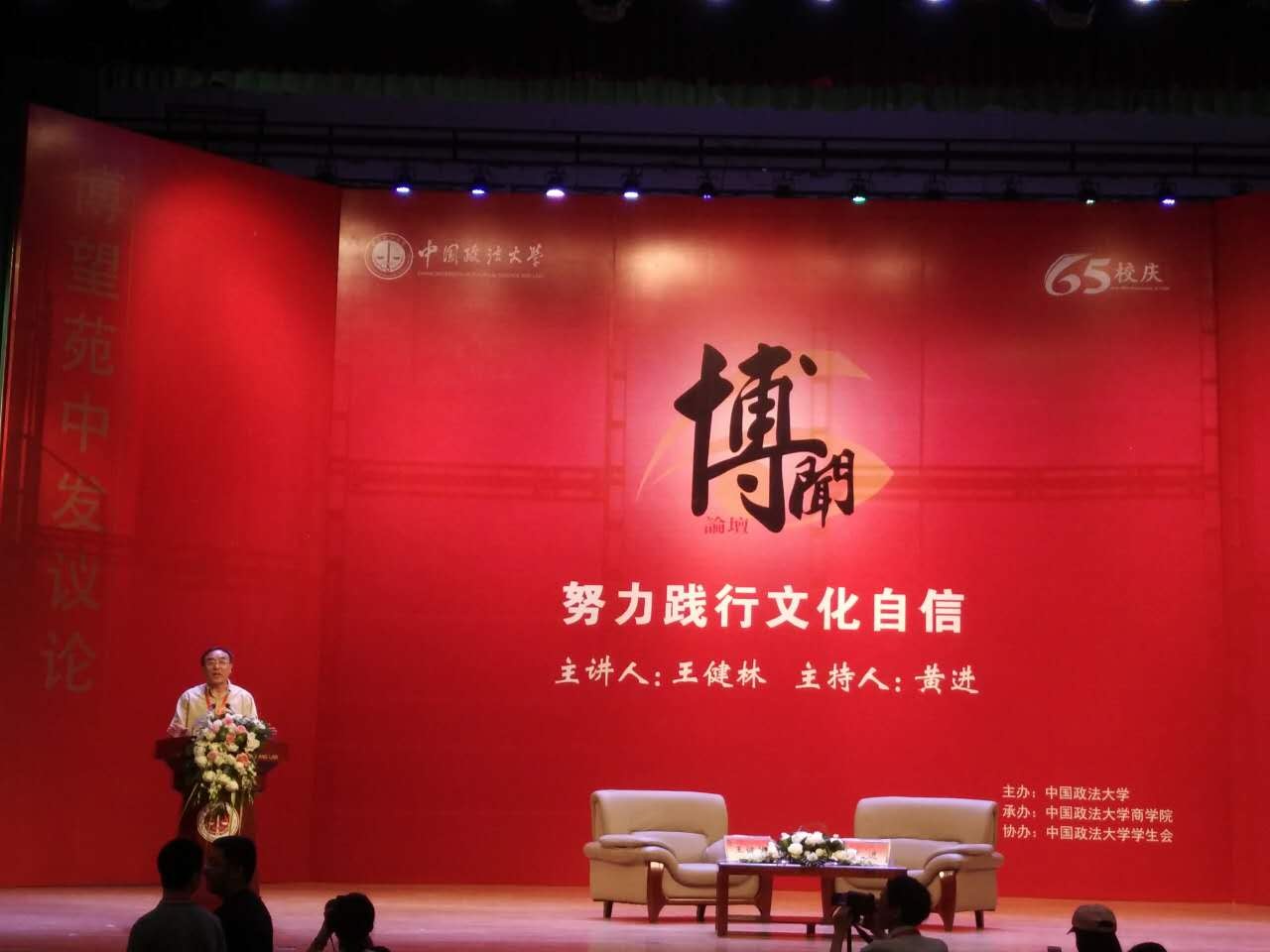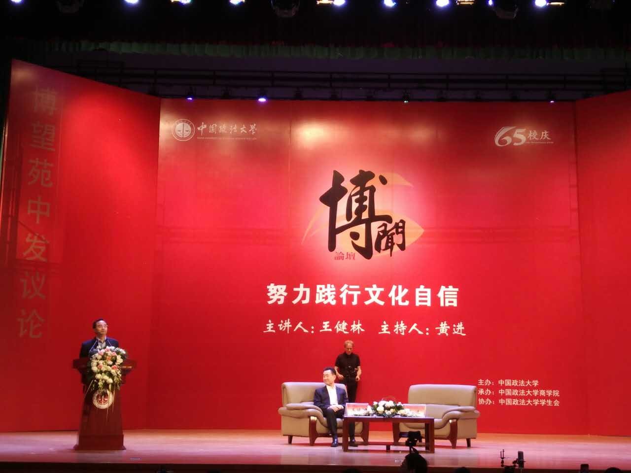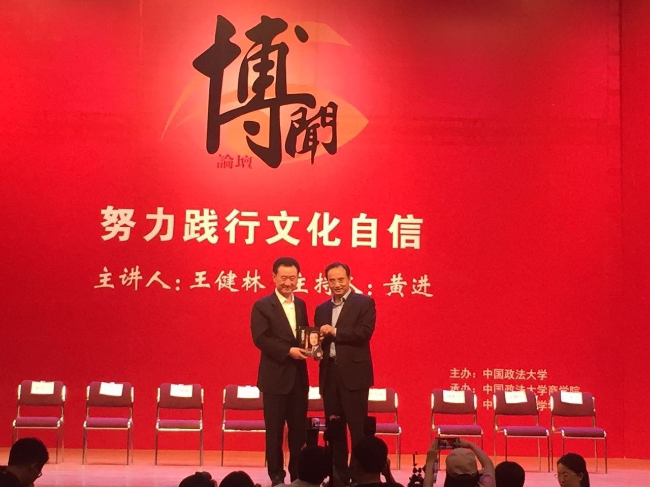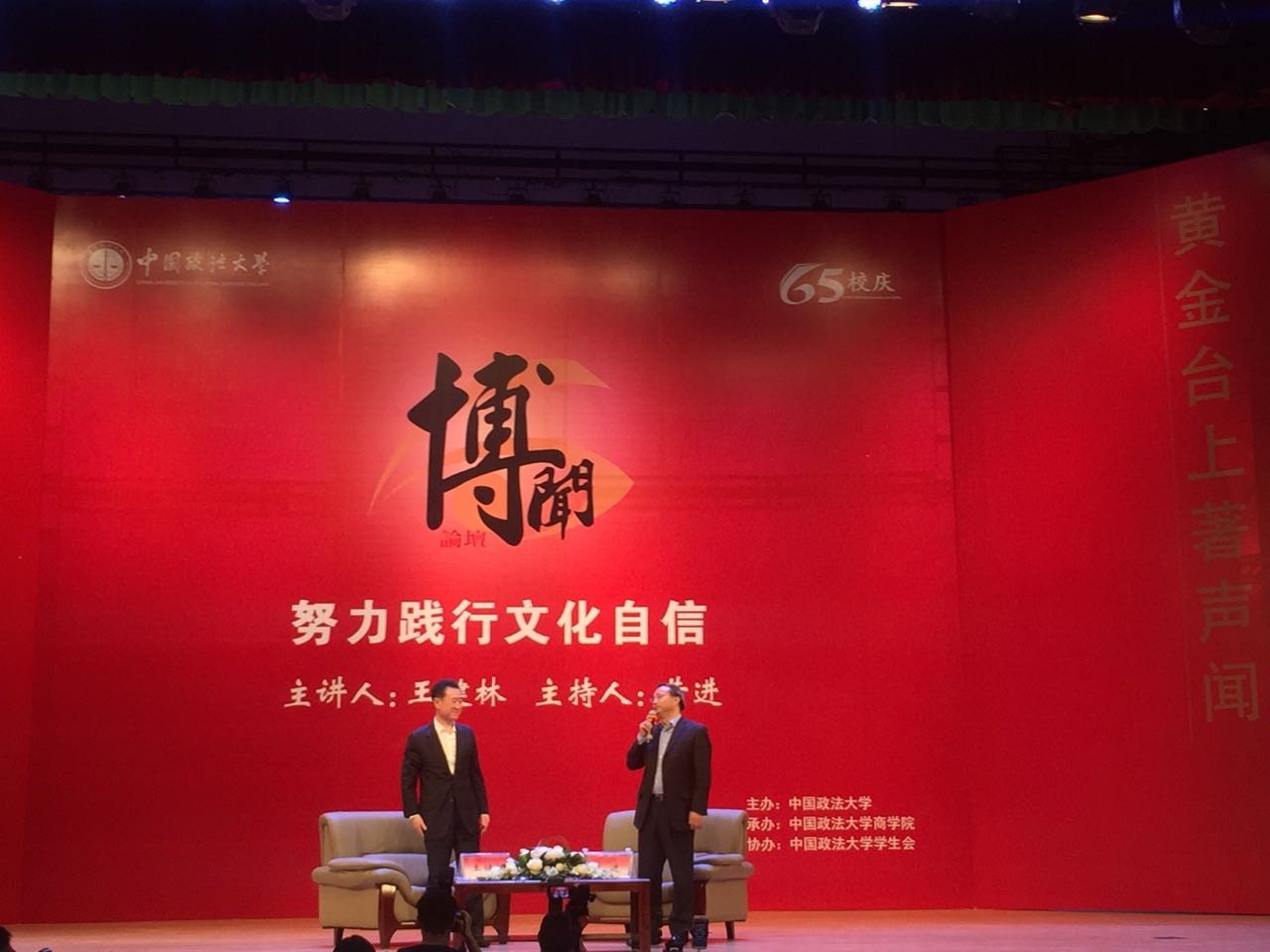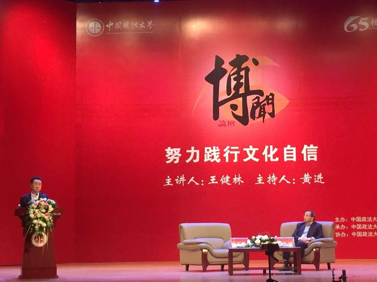5月12日晚,博闻论坛第48期暨必赢242net官网理事会成立报告会在昌平校区礼堂举行。万达集团董事长、必赢242net官网校董王健林先生发表题为《努力践行文化自信》的演讲,并对话黄进校长,与法大师生进行了深入而精彩的交流。