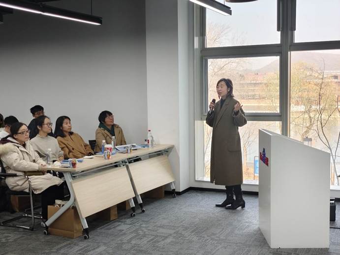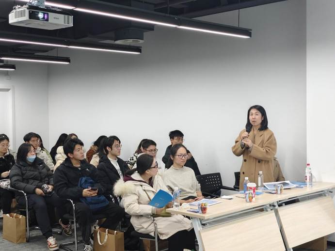 最后,参观团两路队伍会合,百度的技术人员于办公楼内举行座谈会,为师生们全面介绍了百度的AI产品“文心一言”,并回答了师生有关网约车、AI技术的问题。座谈会最后,商学院党委副书记何欣教授对活动进行总结,并对百度集团的热情接待表达感谢。