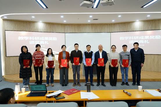 大会首先举行了教学科研成果奖励颁奖典礼。刘志雄副院长介绍有关科研成果奖政策,李欣宇书记宣布2023年学院科研成果获奖名单,院长商文江向11名获奖老师颁发获奖证书。