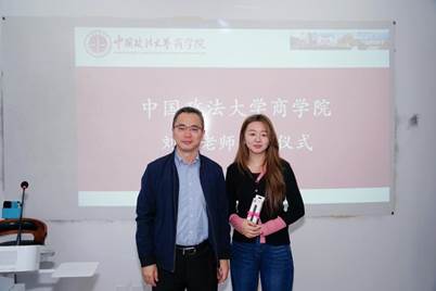 图3:李欣宇书记代表商学院向刘玥老师赠送礼物并合影