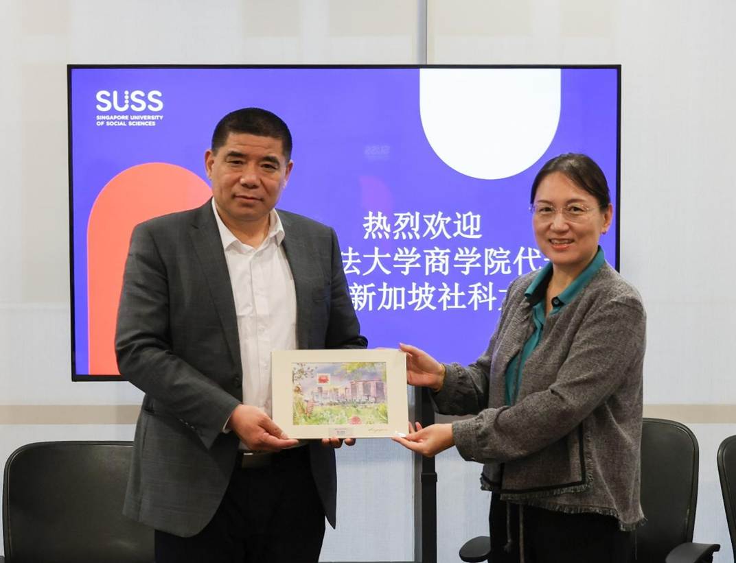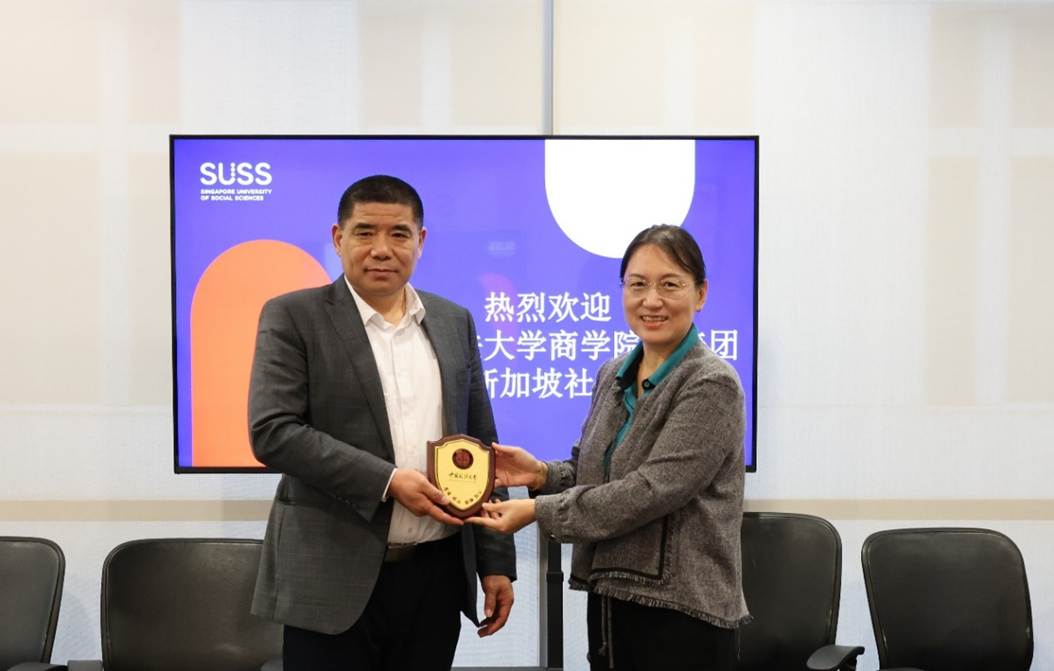 SUSS商学院院长Ding Ding向商文江院长赠送学校纪念品