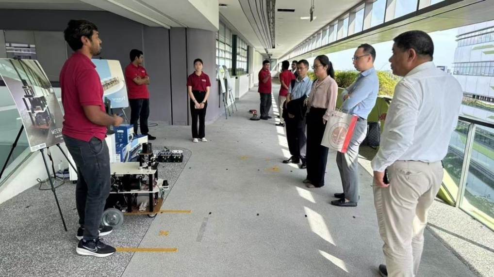 随后,代表团走访了新加坡科技设计大学。新加坡科技设计大学(Singapore University of Technology and Design,简称SUTD)是新加坡第四所公立大学,是世界上第一所将设计创新融入研究与工程的大学。代表团与机器人与自动化实验室主任、工业产品开发系Mohan Rajesh Elara副教授进行了座谈。Mohan Rajesh Elara副教授详细介绍了SUTD “以科技和设计为核心,注重跨学科教育模式”的办学特色,与中国高校的合作交流模式,其研究团队--机器人与自动化实验室的老师和同学们向代表团介绍了多种机器人的产学研成果。双方就本科、学硕、MBA学生的交流、大数据研究与实验室建设工作、教学模式改革和教师交流等相关议题进行了深入的探讨,并表达了进一步加强双方交流与合作的愿景。