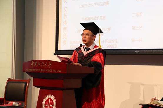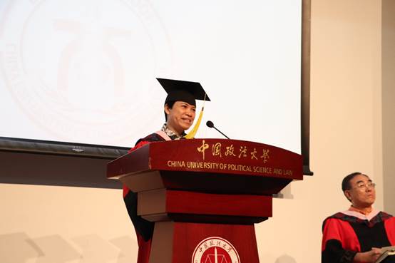 刘纪鹏院长的即兴毕业典礼致辞将会场气氛推向高潮。刘院长语言诙谐幽默,而又不失真诚真情。他首先表示,自己是一位既年老又年轻的院长,年老是因为自己已经61岁,受人之托,忠人之事;年轻是因为自己任商学院院长仅半年,新人履新,展改革之志。他同时指出,大学毕业是人生的重要时刻,因为毕业不仅意味着成人走向社会,更在于经此一别,同学们或许在人生中很难再完整地相聚。因此作为院长也作为父亲,即使在百忙之中他也要参加同学们人生中的重大仪式,向大家表达惜别之情。典礼上,刘院长回顾了自己的大学生活和同窗情谊,他强调指出情商和智商对人生的重大影响,而情商在未来复杂的社会环境中,尤其是对于商学院的学生来说,作用尤为突出。他提出期冀,希望在今后的培养过程中,学院能够在对大学生的综合素质要求中更加注重情商和智商的培养。随后,刘院长以一曲《送别》表达了内心对送别毕业生的留恋。最后,第一次以院长身份致辞的他真沉表示希望能将法大商学院建设得更好,并在不久的将来能让每一个商院毕业生以法大商院人的身份为傲、为荣。整场演讲,同学们时而为院长的幽默而欢呼;时而为院长真情而感动;时而为院长的深沉而思考;时而为院长的改革而激动;时而为眼前的氛围而伤感。讲话结束,同学们以热烈持久的掌声再一次表达了对院长这一番真诚而富有深意的致辞最诚挚的感谢和对学院的深深惜别之情。