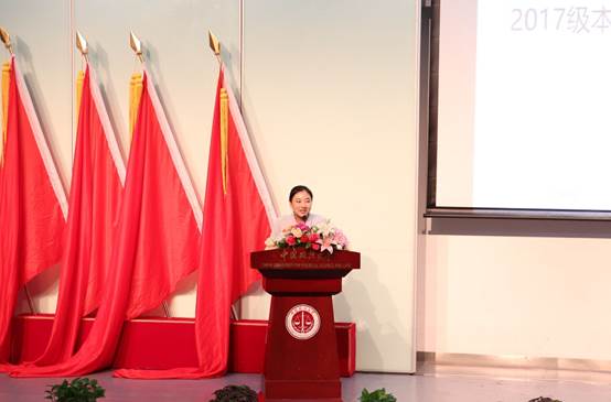 (图:商学院分党委副书记兼副院长何欣老师宣布入学典礼正式开始)