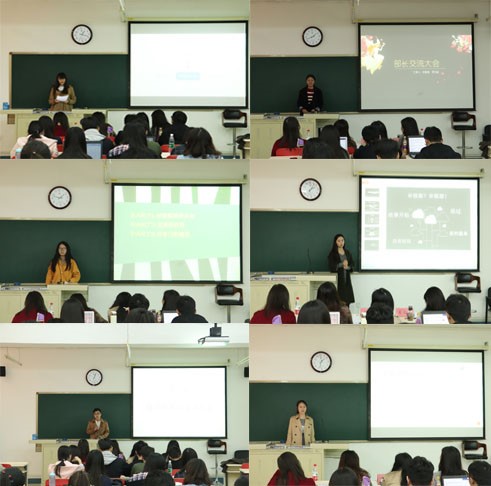 2017年10月20日星期五下午13:00,第一届商学院学生会及学委会部长交流大会在端升307教室举行。参加本次交流大会的有商学院分党委副书记兼副院长何欣,分团委书记郭虹,16级辅导员王文培,分团委副书记王晓曦,十六任学委会主任唐铭,十六任学生会主席付浩楠,十六任各部门分管以及学委会和学生会的全体部长。本次交流大会旨在增进全体部长对自我工作的进一步认识,促进各部门之间工作的协调与配合。