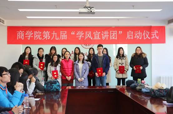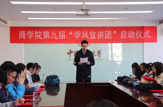 2017年12月5日中午12点30分,必赢242net官网第九届“学风宣讲团”启动仪式在逸夫楼4040成功举办。本次活动由商学院分团委主办,商学院学生委员会督察部承办,旨在激发学习热情及弘扬优良学风。参加本次启动仪式的有商学院分党委副书记兼副院长何欣,商学院分团委副书记、2015级辅导员王晓曦,2017级辅导员吴颖,工商管理双学位双学士辅导员郭晔,第九届“学风宣讲团”成员以及2016级、2017级各班班长和团支书。