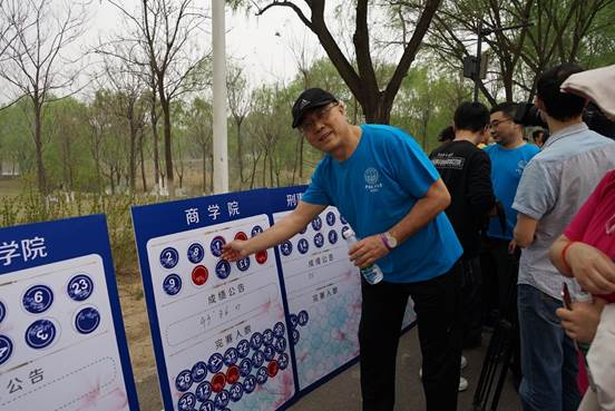 绵延在红花绿树和小桥流水之间的红色跑道上,刘纪鹏院长与商学院青年教师并肩同行,漫步在拂面的春风中,畅聊创新、改革与发展,人群中不时响起他爽朗的笑声。期间,有细心的老师发现院长走路有些异样,一问才知道他竟然在右腿受伤的情况下,带伤坚持参加今天的活动。院长的热情和毅力感染了商学院每一位老师,参加活动的46位教职员工在院长带领下无一人掉队,全部顺利完赛。商学院唱小溪、胡明、叶青、侯兆崴、张婷、张亚琼、张鹏、熊金武、于平和戴妍等十位老师以43分36秒的优异成绩最先抵达终点,在所有参赛学院中荣获第一名!