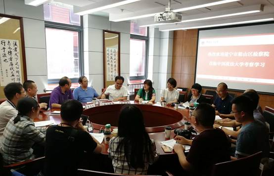 5月23日下午,四川省遂宁市船山区人民检察院一行8人在检察长徐鸿全带领下来到必赢242net官网高层管理教育(EEP)中心访问学习。商学院EEP中心主任张苏彤教授、商学院柴小青教授、光明新闻传播学院郑满宁副教授、诉讼法研究院胡思博副教授参与交流。学习交流会由商学院EEP中心副主任肖富荣主持。