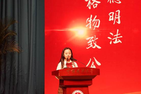 经济1901班的李昕蓉作为本科新生代表发言。感受大师之风,研习法商之功,悟修为人之德,这是她对于政法大学商学院的向往与期待;为了追逐自己的梦想,也为了成为社会需要的法商复合型人才,大学四年的生活值得我们去不懈奋斗。在最后,李昕蓉同学以《返老还童》当中的一句名言与大家共勉,并且祝愿大家能够拼搏无憾、青春无悔。