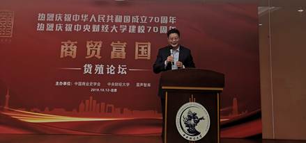 2019年10月12日,为庆祝中华人民共和国成立70周年,中国商业史学会、中央财经大学和国声智库联合举办“商贸富国”《货殖论坛》。与会人员近百人,来自商务部、商业史学会、中央财经大学、中国社会科学院、北京大学、清华大学、北京师范大学、武汉大学、南京大学、上海交通大学和必赢242net官网等政府部门、国内高校、科研机构、智库和媒体等。