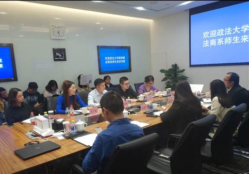 10月18日下午,在系主任刘志雄教授带领下,商学院法商管理系许恒副教授、唱小溪老师、华忆昕老师、工商管理系邓晓老师以及法商管理系研究生与本科生一行15人赴美团·大众点评网(以下简称美团)指挥总部调研交流。美团外卖企业社会责任委员会杨碧聪秘书长、美团中央政府事务部范显辉高级总监、美团研究院朱峰研究员、王敏研究员以及集团法律政策研究中心李小武高级研究员出席了本次座谈。座谈会由李小武、许恒主持。