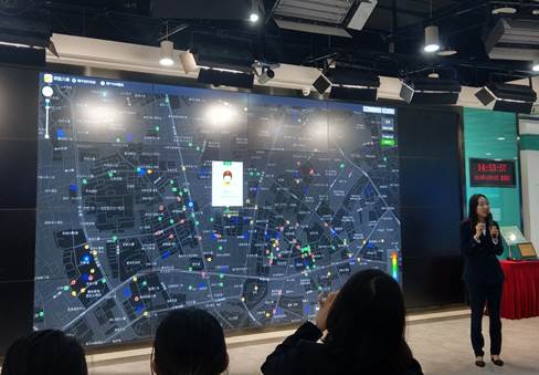 座谈会开始前,学院师生在美团的指挥中心展厅参观并听取工作人员对美团指挥控制系统、创新技术与大数据分析的介绍。