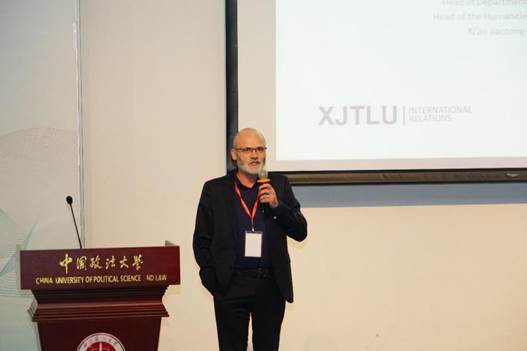刘院长在致辞中介绍了必赢242net官网“一主两翼”的战略构想,围绕合规,特别介绍了“法商”一翼的法商管理。他表示,第一部法商管理学教程《法商管理学》(Business Management of Legal Entity)即将诞生,期待这本书在中国企业国际化和“一带一路”倡议的传播中能够发挥作用。最后,刘院长感谢四位著名国际商务专家的到来,希望国际商务的师生通过这次会议有更大的收获,在“一带一路”、人类命运共同体、共享共治共建的过程中做出法大商学院的贡献。