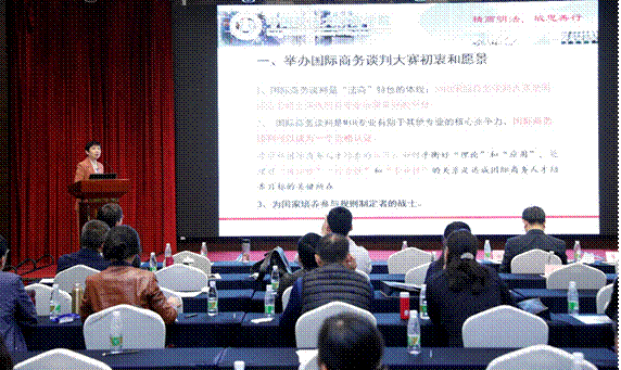 图:宏结教授主持第二届全国MIB国际商务谈判赛的启动仪式
