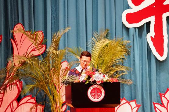 毕业典礼的最后,李欣宇书记向全体毕业生深情致辞。李欣宇书记首先代表商学院向2021届毕业生、全体家长、各位老师同学表示了热烈的祝贺,随后介绍了商学院学科建设近年来实现的重大突破,并通过三个故事表达了他对学子们的殷切期望。第一个故事是《三国志·陈登传》中“求田问舍”故事。许汜和陈登见面不谈家国大事而是一个劲地打听购买当地的田地房产,只盘算的怎么过好自己的小日子,结果引起陈登的不满并受到了刘备的批评。这一则故事旨在提醒毕业生们“毕业之际,正是树立职业生涯初心的大好时机”!“位卑未敢忘忧国”,个人只有主动地融入时代,目光长远,投身伟大的事业,“服务国家、奉献社会”,才有可能获得真正的成功。紧接着,李欣宇书记分享了第五次反围剿遇挫后,党中央召开遵义会议的党史故事。他指出,同学们走出校园,免不了经历一番起伏跌宕奋斗不息的人生际遇,都将拥有一份不可替代的人生体验,只有秉持实事求是的态度直面生活和工作中困难,不逃避,勇敢承担自己应担负起的责任。做到像罗曼·罗兰在所说那样,“世界上只有一种真正的英雄主义,那就是在认清生活真相之后依然热爱生活”。