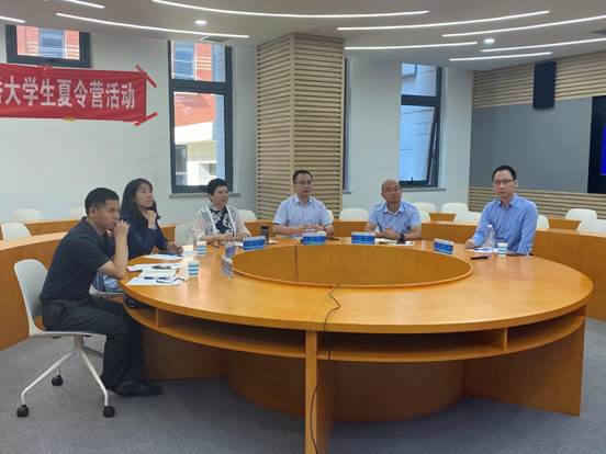 7月4日下午,夏令营活动完成了全部的日程安排,举行了简短的闭营仪式。商学院党委书记李欣宇、副院长刘志雄、熊金武、副书记何欣、院务助理巫云仙,以及发言教师代表顾凡在学院路校区综合教学图书楼0111线下参加。