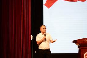 接下来,MBA中心副主任胡继晔教授为全体新生介绍了MBA整体情况。首先胡老师代表中心对所有同学的到来表示了欢迎,并激动地表示,21级同学是创造了一志愿率100%奇迹的一届同学,是振奋人心的一届。他殷切的希望21级同学们能够乘风破浪,在学业上再创辉煌,希望两年后大家能够创造学位论文通过率100%的又一个奇迹。接下来,胡老师对MBA培养方案的相关情况进行了介绍,提醒大家选课注意事项,也鼓励大家通过参加案例大赛、亚沙赛等活动获得学分,不断增强意志品质。令人印象深刻的是,胡继晔老师还特别强调了一个单词“Distinguished”,翻译过来那就是“区别、杰出”。他希望大家能够每天跟前一天的自己区别一点、进步一点,最后成为杰出的学子、企业者。