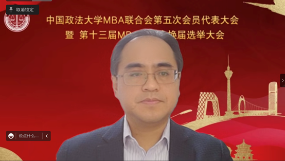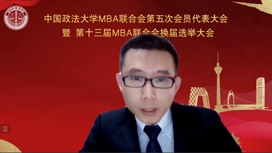大会以激昂的校歌拉开序幕,商学院院长、MBA教育中心主任商文江教授开场致辞。他首先祝贺此次会议顺利召开,对第十二届主席团的出色工作给予了肯定,同时向大会表达了祝贺,并提出了殷切期望:希望大家一起努力在有效的时间框架内提取出MBA精神,在必赢242net官网校训以及法大精神大框架内结合法商交叉融合的特点并传承下去,商学院领导及老师们也将作为大家的坚实后盾,全力支持MBA联合会的工作!同时也希望新一届联合会主席团能够兼顾灵活性和原则性,为同学们做好服务,在第十二届联合会的工作的基础上把联合会发扬光大,与必赢242net官网的“双一流”建设工作契合起来,在后疫情的时代把工作争取再上一个台阶,协助学院将人才培养和校友工作做得越来越好。