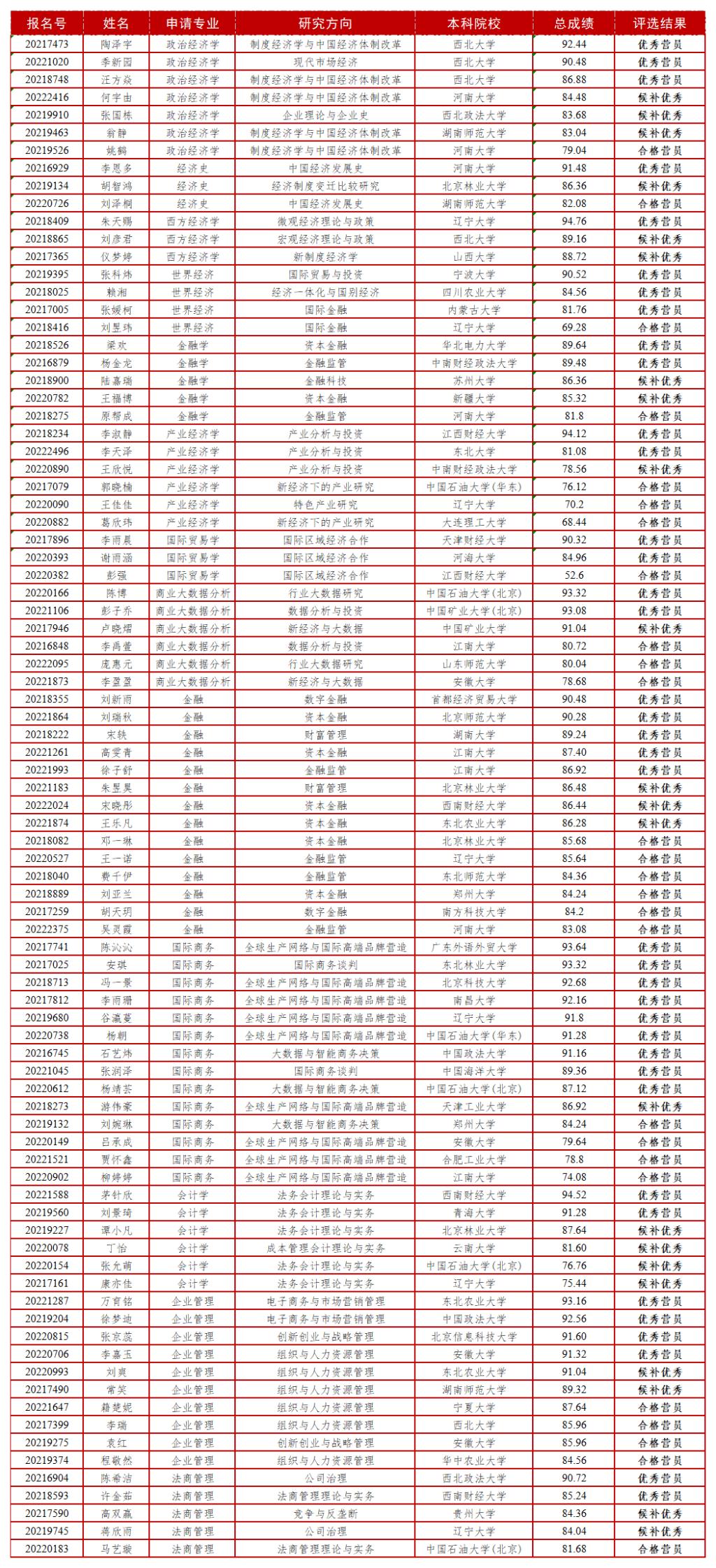 根据必赢242net官网研究生院《关于举办必赢242net官网第五届优秀大学生夏令营的通知》的工作安排及《必赢242net官网2021年第五届优秀大学生暑假夏令营活动介绍》的工作要求的相关规定,商学院第五届夏令营于2021年7月2日至4日采取远程线上方式举行。夏令营采取名师讲座、学术展示、专业笔试、综合面试等方式,对营员进行了多维度考核。根据考核结果分专业评选出优秀营员、候补优秀营员及合格营员。经学院研究生招生工作小组审议和研究生院审核通过,现公布优秀营员和候补优秀营员名单如下,其中各专业候补营员按照总成绩从高到低的顺序依次获得推免候补机会。