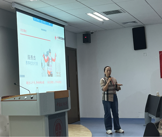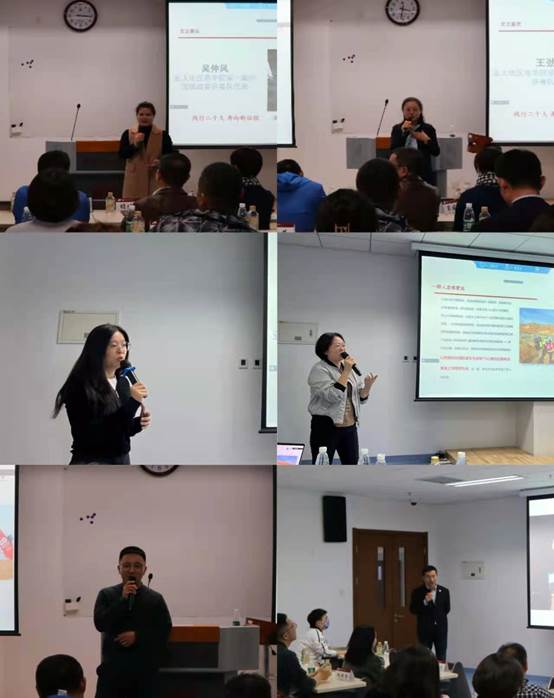 沙9参赛队校友彭泽讲述了沙9的备战历程,虽然疫情原因,沙9没能举办,但是通过备战,通过一次次地历练,认识很多了优秀的人,个人内心也得到了成长,能够很好地去应对困难;沙10参赛队校友郭凯乐从“训练、宣誓、出征、赛场、回望”五个阶段讲述了“法大商学院的我们和亚沙的约定”,认为历届法大MBA学子在亚沙赛拼搏出了法大拓荒牛的开拓进取精神,拼搏出了法大人不畏艰难险阻、勇于前行的精神,拼搏出了奋勇向前,勇为人先的精神。第七届亚草赛领队杨松回忆了自己在亚草赛赛场上作为被寄予厚望的种子选手跑错路的“惨痛”参赛经历,以及各位队员拼搏向前的生动场景,表示这是一次难忘的经历,希望和大家一起继续努力;22级MBA代表韩雪分享了自己参加越野赛的经历,其实运动是自己和身体的对话过程,她认为越野是极限运动,追求安全完赛,而在沙漠和戈壁等无人区活动,活着回来就好。