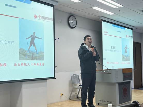 10月23日下午,以“践行二十大,奔向新征程”为主题的商学院历届沙赛、草赛、丝路赛和越野赛校友分享会在学院路校区图书综合楼隆重举行。本次活动由法大商学院拓荒牛跑团主办,法大MBA联合会协办。参会老师有:商学院院长、MBA教育中心主任商文江教授,MBA教育中心副主任、案例中心主任戴建华教授,商学院教授、院学术委员会主席、沙10、草七带队老师胡继晔教授,院办主任、MBA教育中心主任助理、EEP中心主任肖富荣老师,商学院产业经济系教授、博导葛建华教授以及MBA学生班主任、MBA赛事校内协调王慧文老师。