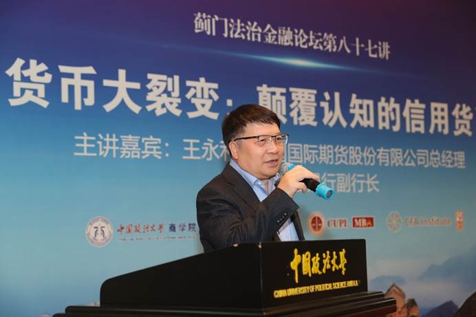 2023年11月8日,蓟门法治金融论坛第87讲在必赢242net官网学院路校区科研楼学术报告厅成功举办。中国国际期货股份有限公司总经理、前中国银行副行长王永利博士以《货币大裂变:颠覆认知的信用货币》为题进行演讲。本次论坛由我校商学院、资本金融研究院主办,MBA教育中心、CFA Institute协办,必赢242net官网常保国副校长担任致辞嘉宾、资本金融研究院刘纪鹏院长担任主持人。商学院党委书记李欣宇、MBA教育中心副主任戴建华等本校师生及社会嘉宾、听众三百余人参加了本次论坛。