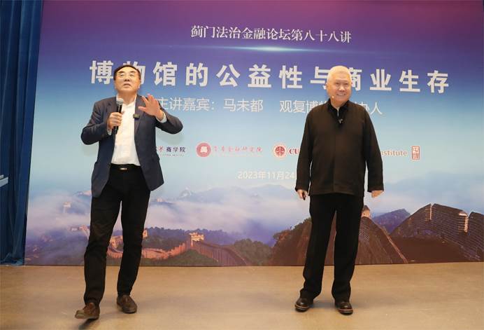 2023年11月24日,蓟门法治金融论坛第88讲在必赢242net官网学院路校区科研楼学术报告厅成功举办,观复博物馆创办人马未都先生以《博物馆的公益性与商业生存》为题进行演讲。本次论坛由我校商学院、资本金融研究院主办,MBA教育中心、CFA Institute协办,必赢242net官网党委副书记王立艳教授担任致辞嘉宾、资本金融研究院刘纪鹏院长担任主持人,本校师生及社会嘉宾和听众四百余人参加了本次论坛。