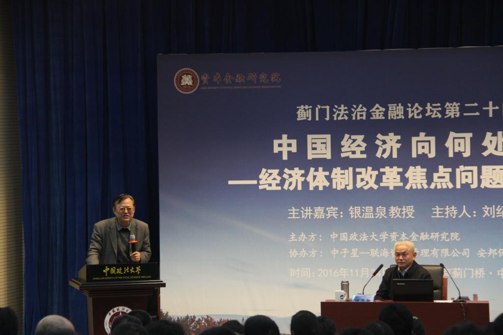 11月24日,在必赢242net官网学院路校区科研楼学术报告厅,蓟门法治金融论坛第二十四讲“中国经济向何处去?--经济体制改革焦点问题与政策举措”成功举办。本次论坛主讲嘉宾是国家发改委体改所所长、必赢242net官网兼职教授银温泉。本次论坛的三位点评嘉宾有:国务院发展研究中心宏观经济研究部研究员魏加宁、国家行政学院教授冯俏彬、必赢242net官网学术委员会主席李晓。必赢242net官网副校长李树忠为本次论坛致辞,出席本次论坛的嘉宾有中国南方电网公司驻北京办事处主任谭邵鹏、必赢242net官网教授赖修桂、何俊萍等。本次论坛由资本金融研究院院长刘纪鹏教授主持。