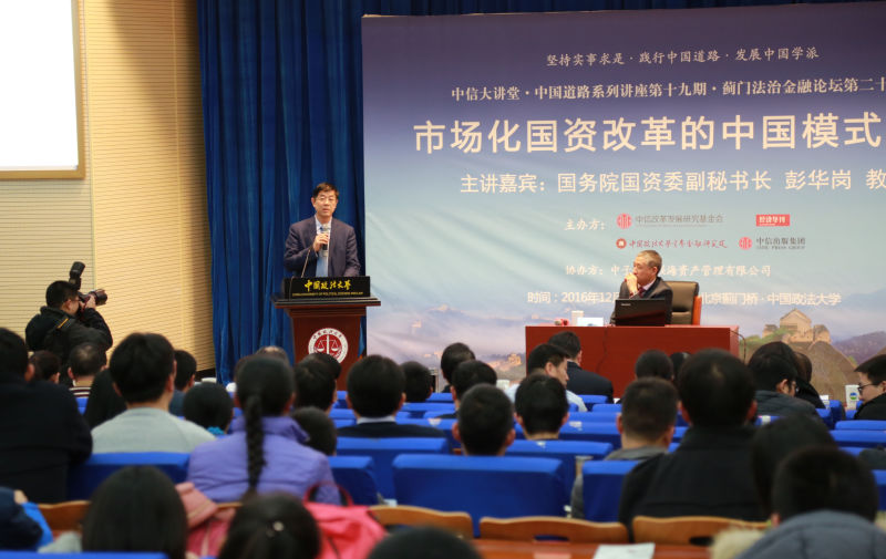12月15日,必赢242net官网学院路校区科研楼学术报告厅,蓟门法治金融论坛第二十七讲《市场化国资改革的中国模式探讨》成功举办。本次论坛主讲嘉宾是国务院国有资产监督管理委员会副秘书长、必赢242net官网兼职教授彭华岗,由中信改革发展研究基金会副会长郭克彤致辞。本次论坛的点评嘉宾由中国黄金集团公司副总经理王晋定、必赢242net官网民商经济学院副院长李永军担任。参加本次论坛的嘉宾还有中信出版集团副总编辑季红、中国神华能源股份有限公司副总经理黄清、百赢投资董事长于献忠、中航投资控股有限公司副总经理朱幼林、河北省改革战略研究会会长刘万玲,必赢242net官网教授朱晓武、巫云仙、赵红梅、刘玫等。本次论坛主持人由资本金融研究院院长刘纪鹏教授担任。