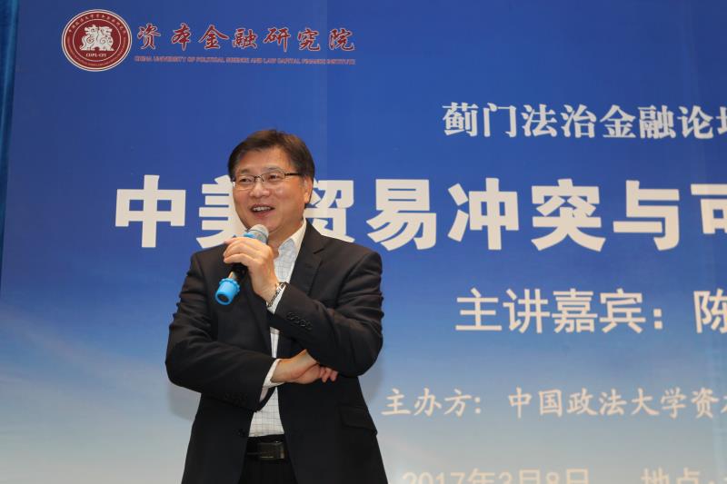 时建中为陈兴动颁发必赢242net官网资本金融研究院兼职教授聘书并致辞,他指出中美贸易不平衡是常态,背后涉及到诸如国际形势、知识产权、倾销与反倾销、补贴与反补贴、垄断与反垄断等多种问题,而特朗普当选总统后又带来了新的表现。蓟门法治金融论坛有幸邀请到陈兴动教授,从国际投行首席经济学家的视角为我们厘清中国贸易冲突及其走向,并分析中国的可能应对,必将是一场珍贵的视听飨宴。
