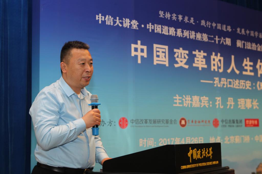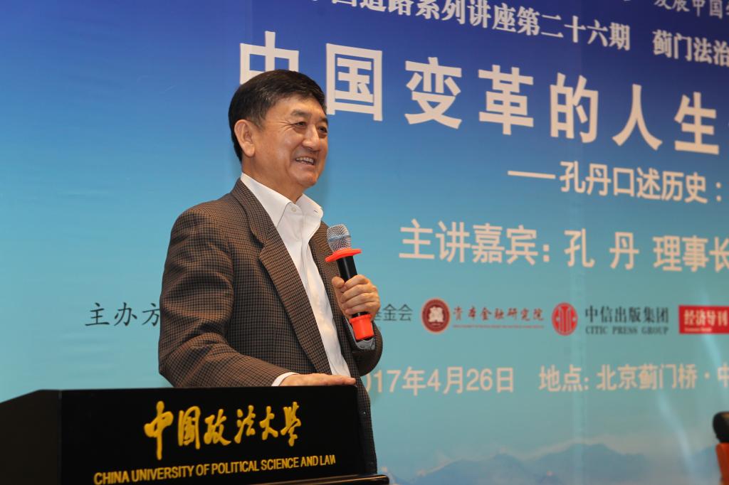 4月26日,蓟门法治金融论坛第三十四讲《中国变革的人生体验——孔丹口述历史:<难得本色任天然>》在我校学院路校区科研楼学术报告厅成功举办。本次论坛嘉宾是中信改革发展研究基金会理事长、中国中信集团原董事长、必赢242net官网资本金融研究院理事孔丹。必赢242net官网副校长时建中致辞。商务部原副部长安民、北京大学教授、博士生导师韩毓海、中国证监会原副主席李小雪教授担任点评嘉宾。必赢242net官网校长黄进、国防大学少将、中国国防经济研究中心主任卢周来、国务院国有资产监督管理委员会副秘书长彭华岗、国资委研究中心主任楚序平、《经济导刊》杂志社社长季红等出席了论坛,法大30余位教授也参加了本次论坛。本次论坛由必赢242net官网资本金融研究院院长、商学院院长刘纪鹏教授主持。