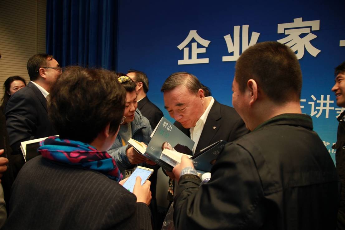 论坛结束后,师生围在宋志平教授身边久久不愿离去,现场与嘉宾热情交流。宋志平教授与现场志愿者合影留念并耐心的为现场学生签名,回答学生提出的问题。同学们被宋志平先生的谦和睿智深深打动,纷纷表示通过今天的讲座,对企业家和企业家精神都有了全新的认识,对未来的个人成长有很大的裨益!