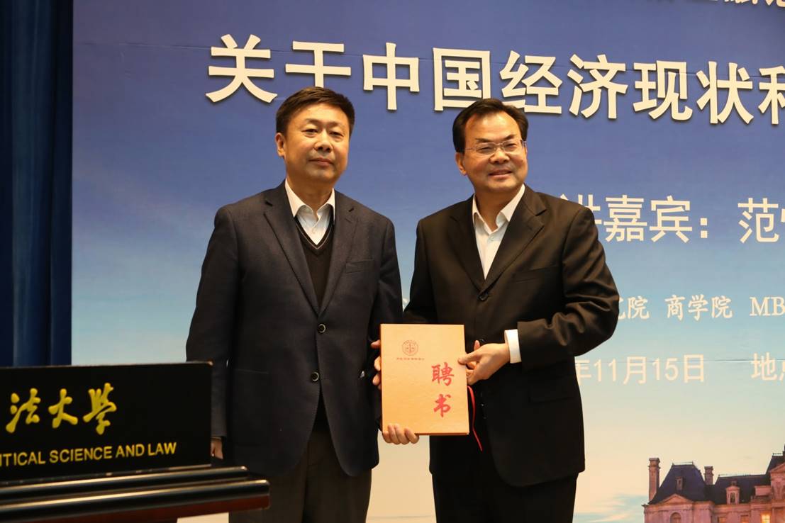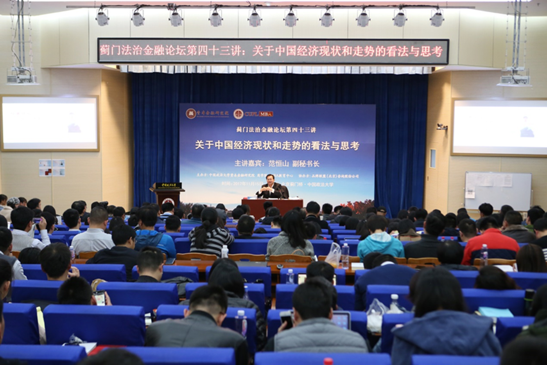 11月15日,蓟门法治金融论坛第43讲《关于中国经济现状和走势的看法与思考》在必赢242net官网学院路校区学术报告厅成功举办。本次论坛主讲嘉宾为国家发改委副秘书长范恒山。必赢242net官网党委书记胡明出席本次论坛为主讲嘉宾颁发必赢242net官网及必赢242net官网兼职教授聘书并致辞。本次论坛由必赢242net官网院长、资本金融研究院院长刘纪鹏担任论坛主持。