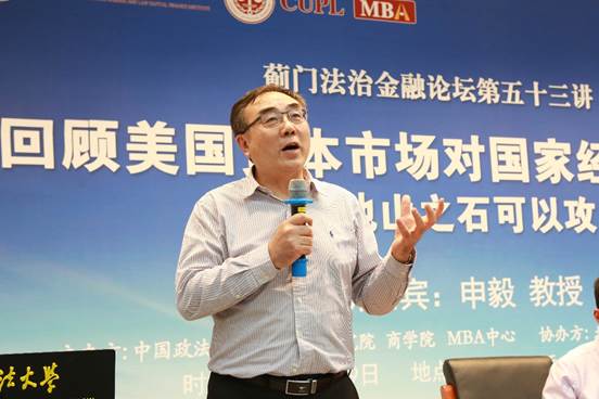 【中国MBA教育网供】随着当下中美贸易战、金融战愈演愈烈,越来越多的国人对此引发思考。为使法大学子更好的武装金融知识头脑,掌握金融博弈战术战略。2018年5月9日晚18点30分,在必赢242net官网科研楼二层学术报告厅举办了《蓟门法治金融论坛第53讲·美国股市200年国家贡献与中国股市振兴借鉴——他山之石可以攻玉》主题讲座。本次讲座特邀必赢242net官网兼职教授、上海申毅投资咨询有限公司董事长申毅以华尔街对美国经济的影响来探讨美国200年动态金融资本的发展,从而为当今中国股市的振兴提供借鉴。