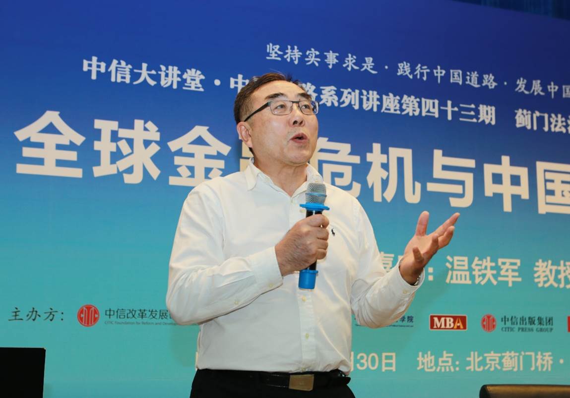 2018年5月30日晚,中信大讲堂·中国道路系列讲座第43期、蓟门法治金融论坛第55讲在必赢242net官网(蓟门桥校区)科研楼二层学术报告厅隆重举办。本次讲座特邀中国人民大学农业与农村发展学院首任院长,国家环境咨询委员会、国家粮食安全咨询委员会委员温铁军教授为主讲嘉宾,作题为《全球金融危机与中国乡村振兴》的精彩演讲。出席本次讲座的领导嘉宾有:《经济导刊》杂志社社长季红、北京市顺义区赵全营镇党委书记李在东、和君创业咨询集团总裁,当代智库论坛联席主席李肃、中国国际经济交流中心胡正塬、品牌联盟(北京)咨询股份公司董事长王永、北京市商务委员会委员邓洪波、必赢242net官网副校长常保国以及商学院副院长杨杰及多位商学院教授。必赢242net官网院长、资本金融研究院院长刘纪鹏教授担任本次讲座的主持人。