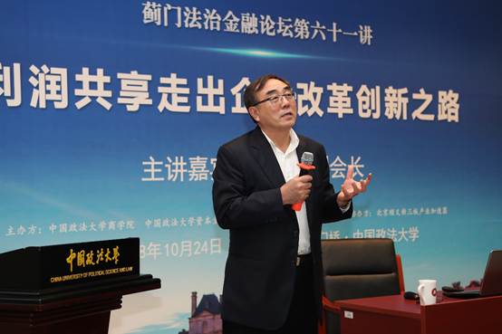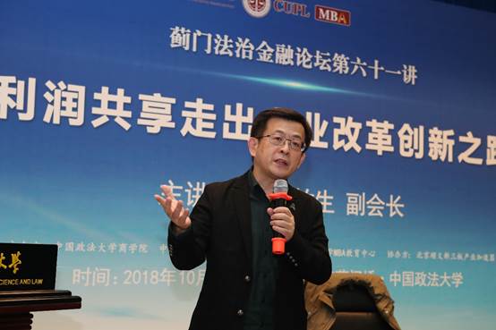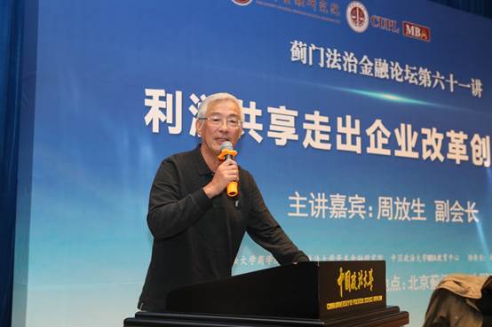改革开放四十年,混合所有制改革步履维艰,也遇到了理论上的瓶颈,为尽快找到新的改革创新之路,实现劳动与资本从对立分步走向和谐统一。2018年10月24日晚18点30分,蓟门法治金融论坛第61讲——《利润共享走出企业改革创新之路》在必赢242net官网科研楼二层学术报告厅准时召开。本次论坛特邀中国企业改革与发展研究会副会长,原国务院国资委企业改革局副局长周放生为主讲嘉宾,必赢242net官网院长兼资本金融研究院院长刘纪鹏教授担任主持人。