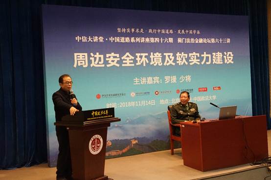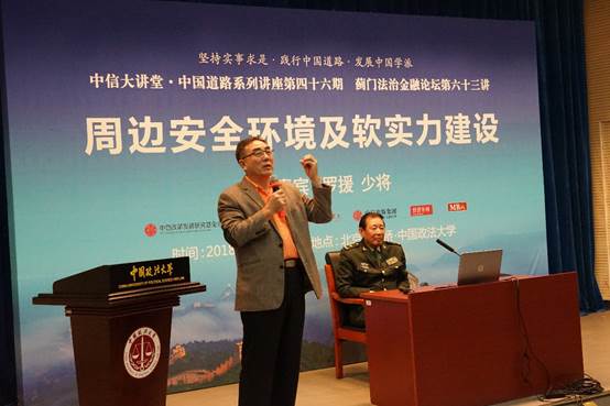 如何正确认识当前中国周边安全环境问题?如何建设中国的软实力?11月14日,中信大讲堂·中国道路系列讲座第四十六期暨蓟门法治金融论坛第六十三讲在学院路校区举行。本次论坛特邀全国政协委员、军事科学学会副秘书长、中国战略文化促进会常务副会长兼秘书长罗援少将以《周边安全环境及软实力建设》为题,解读党的十九大报告对我国安全环境的判断及应对之策。全国政协委员、中国社科院欧洲研究所所长黄平,中信改革发展研究基金会秘书长郭克彤,中信出版集团副总编辑、《经济导刊》杂志社社长季红,华远集团院党委书记马绿波,必赢242net官网党委书记胡明,商学院分党委书记李欣宇,副院长杨杰,分党委副书记何欣以及商学院十余名老师与校内外学生出席本次论坛。论坛由必赢242net官网院长、资本金融院院长刘纪鹏主持。
