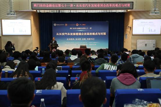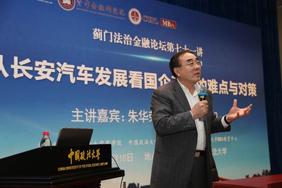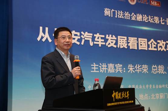 4月10日晚,蓟门法治金融论坛第71讲在学院路校区科研楼学术报告厅举行。本次论坛邀请长安汽车总裁、党委书记朱华荣主讲《从长安汽车发展看国企改革的难点与对策》。国务院国资委资本局局长李冰,国家创新与发展战略研究会副会长、中国国际战略学会高级顾问、中信改革发展研究院资深研究员郝叶力,汽车评价研究院院长、中国汽车报社原社长李庆文,必赢242net官网校长黄进出席论坛,商学院各系所40余位老师和100多位学生参加本次论坛。必赢242net官网院长兼资本金融研究院院长刘纪鹏担任论坛主持。