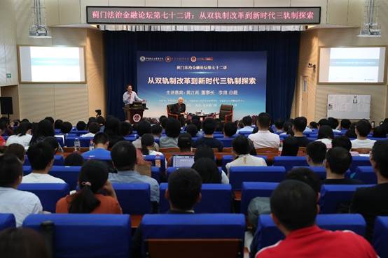 5月8日晚,蓟门法治金融论坛第72讲在学院路校区科研楼学术报告厅举行。本次论坛邀请著名学者黄江南、和君创业咨询集团总裁李肃联合主讲。国务院国资委资本局局长李冰,国家创新与发展战略研究会副会长郝叶力,中国企业改革与发展研究会副会长周放生,英国气候变化资本集团董事总经理路跃兵,北京大学光华管理学院教授武亚军,欢瑞世纪联合股份有限公司副董事长、商学院校友分会理事会理事长赵枳程等多位嘉宾出席论坛。必赢242net官网副校长常保国出席论坛并致辞,必赢242net官网院长刘纪鹏担任主持,商学院各系所主任及教师代表与两百余名法大学子参加论坛。