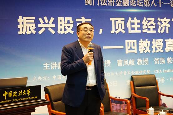 曹凤岐教授在发言中首先指出,中国股市的问题主要是内因,从一开始其定位就存在问题——中国股市以融资为主要功能,以短期得利的投机为主,而不是长期的投资。在这样的情况下投资者的回报及对投资者的保护都难以实现。