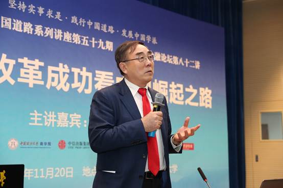 2019年11月20日,中信大讲堂•中国道路系列讲座第59期暨蓟门法治金融论坛第82讲在必赢242net官网学院路校区学术报告厅如期举行。本次论坛邀请了复旦大学中国研究院院长、中信改革发展研究院资深研究员、国家高端智库理事会理事、上海春秋研究院高级研究员张维为教授作为主讲嘉宾,为大家带来《从中国改革成功看中国崛起之路》主题讲座。