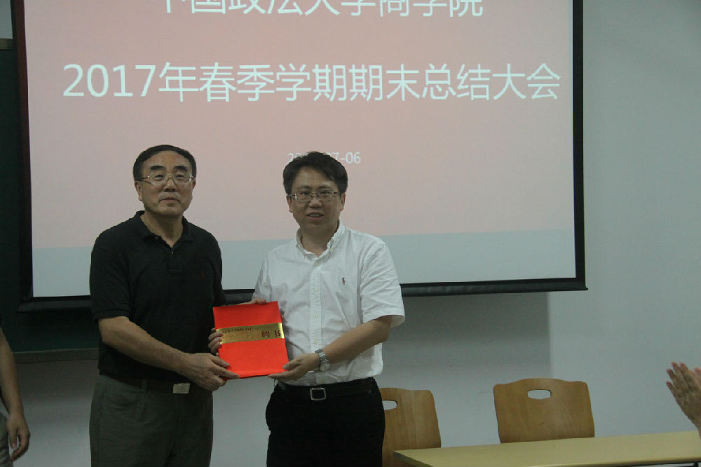 随后,张国钧,孙忠群和夏力老师荣休仪式隆重举行。刘纪鹏院长向三位荣休老师颁发荣休奖金,谢红薇,王玲,宏结等几位老师作为代表向三位荣休老师送上祝福。孙忠群老师和夏力老师发表荣休感言,总结23年与法大商学院共同成长的经历,表达对院领导和全体教师衷心的谢意和不舍之情,坚信商学院在刘纪鹏院长等带领下,一定会有大发展!
