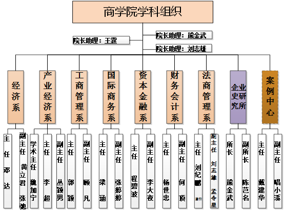 随后,刘纪鹏院长宣布了经商学院党政联席会议表决一致通过的新一届系所主任名单,他们是,经济系主任邓达教授、产业经济系学术主任魏加宁教授、系主任李超教授、工商管理系主任郭颖教授、国际商务系主任梁涵副教授、资本金融系主任程碧波副教授、财务会计系主任杨世忠教授、法商管理系主任刘纪鹏教授(兼)、企业史研究所所长熊金武副教授、案例中心主任戴建华教授,详见下图。