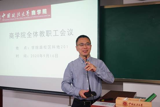 最后,刘纪鹏院长向全院教师明确了本学期的重点工作任务和工作目标,号召大家以饱满的热情全力以赴投入到学院发展建设中去。新一届系所班子的组成,标志着商学院的发展建设进入了新阶段,这将成为商学院发展历史上的又一重要时点!回顾过去,风雨同舟,商学院经历了全面改革走上了平稳发展道路;展望未来,我们将携手并肩,建设商学院美好的明天! 2020年秋季学期首次全院大会在全院教师热烈的掌声中圆满结束。