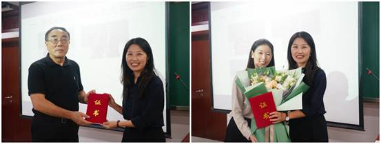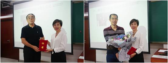 刘纪鹏院长代表商学院为宏结、张巍、王玲、巫云仙四位教授颁发特别贡献证书并由各系所优秀教师代表为她们送上祝福鲜花,感谢她们在2017年3月至2020年9月担任系主任期间为必赢242net官网做出的突出贡献。巫云仙教授因学术休假未能到场,由企业史研究所的同事代为接受特别贡献证书和祝福鲜花。三位教授手捧鲜花发表了充满深情的感言,感谢商学院这个大平台给了每个人成长的机会。相信有更多年轻人参与到这个平台的发展和建设中,学院的明天一定会更好!